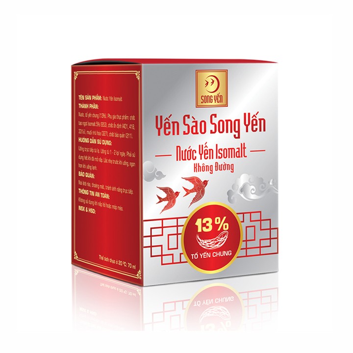 Nước yến không đường hàm lượng yến 13% 6 lọ x 70ml